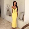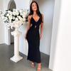 Sexy výstřihový šaty evropského stylu: Úzký střih, Jednobarevný, Odkrytá záda, Šněrování, Dlouhý.