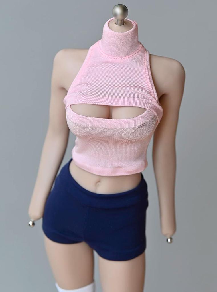 HAMRETHYPPZ 16 Scale Costume for 16 Scale Figure, Female Clothes, Open-Chest T-Shirt, Chest-Showing Top, Sexy Vest, High Neck (Body, Head, Shoes,