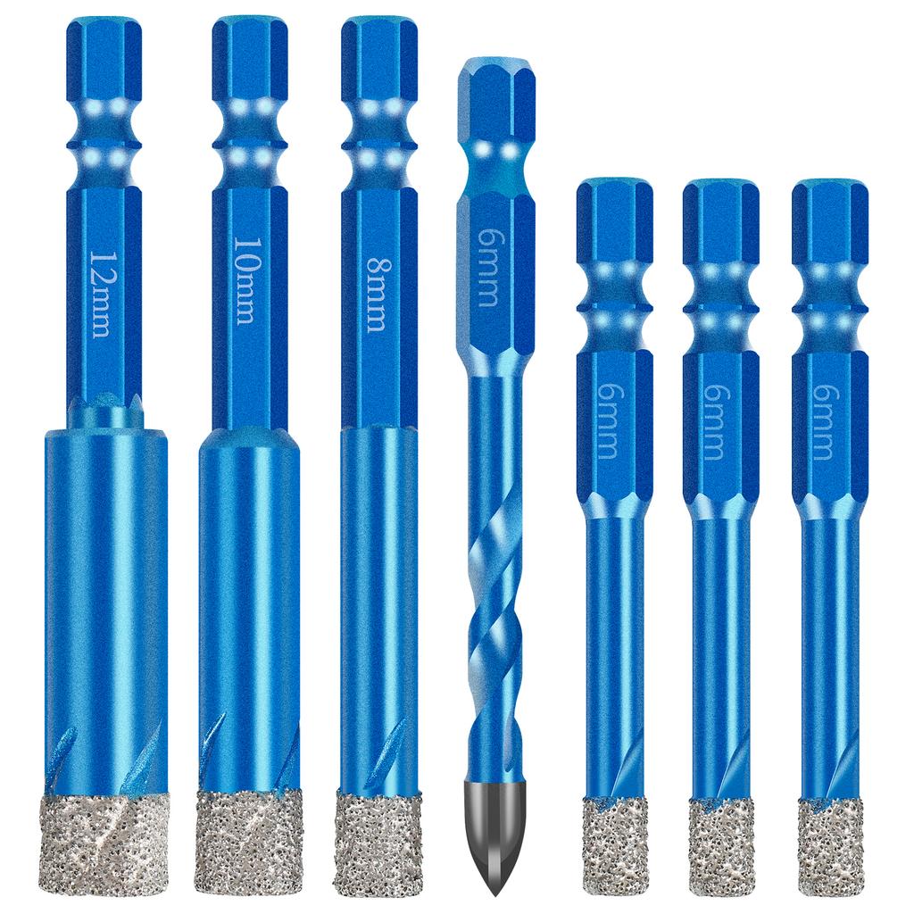 7PCS Diamond Drill Bits Set 6-12mm Quick-Fit Shank Core Bit Portable Efficient Tile Hole Saw Kit for Tile Granite Marble Masonry