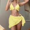 Sexy Bikini Set Plavky Dámské Trojúhelníkové Sestříhané Volánky Tanga Bikini Push Up Bandáž Krycí Oblečení Plážové Oblečení 3dílné Plavky