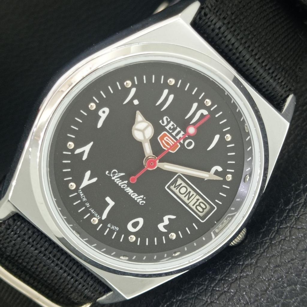 VINTAGE REFURBISHED SEIKO 5 AUTOMATIC 6309A JAPAN MENS BLACK WATCH a442591-1