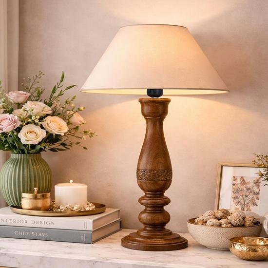 Wooden Table Lamp for Bedroom Living Room Decorative Bedside Reading Lamp with Fabric Shade, 58 cm E27 Holder Bulb Included Home Decor