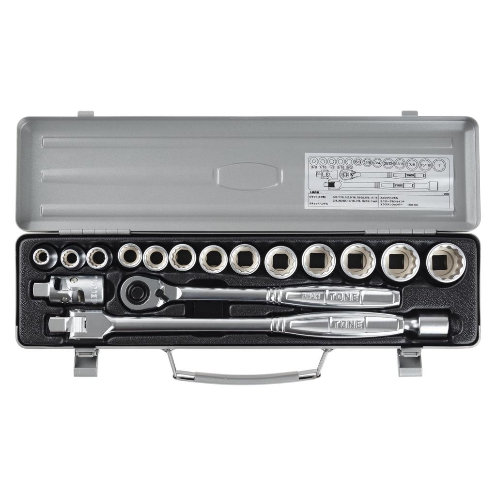 TONE 750 Socket Wrench Includes 17 Pieces Set, 12.7mm (1/2") Drive, Silver,