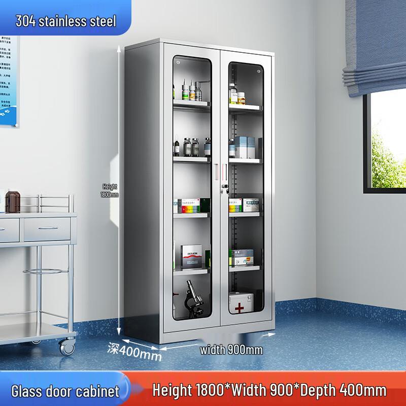 304 Stainless Steel Glass-Front Medical Cabinet