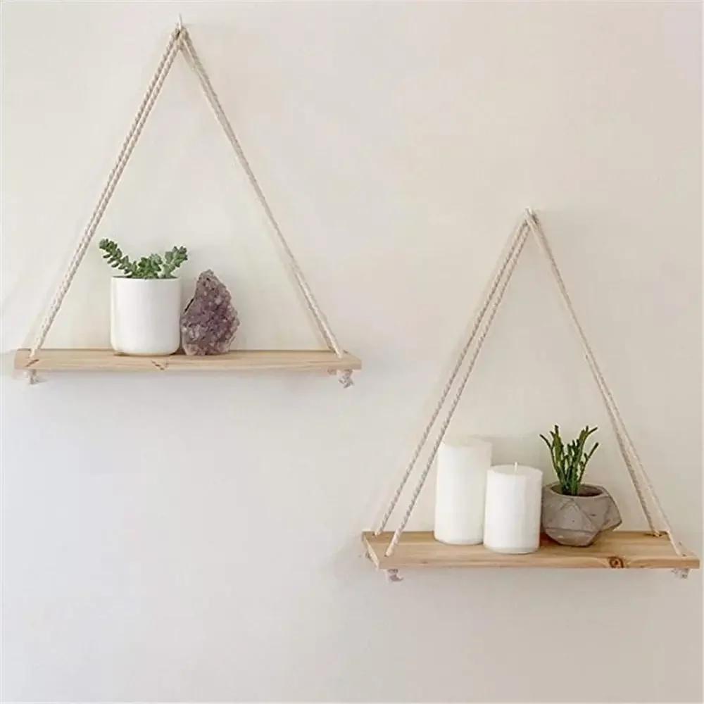 Atmospheric wooden swing hanging rope wall-mounted floating shelf plant flower pot indoor and outdoor decoration simple design