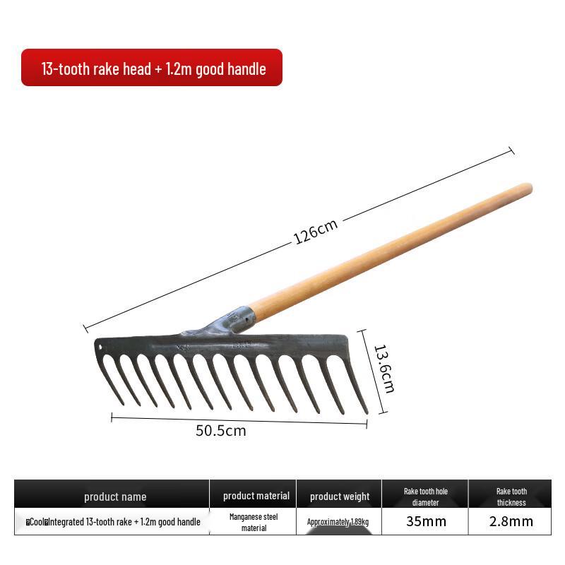 13-Tooth Manganese Steel Garden Rake with 1.2m Handle