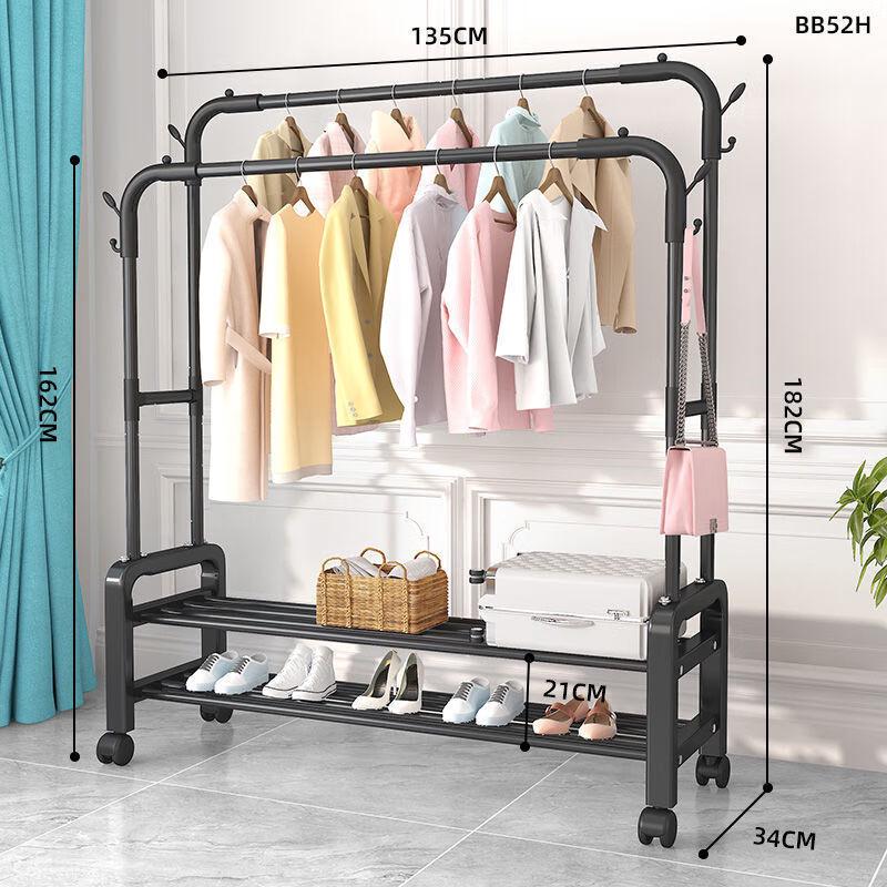 OIMG Foldable Metal Garment Rack with Storage Shelves and Wheels