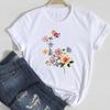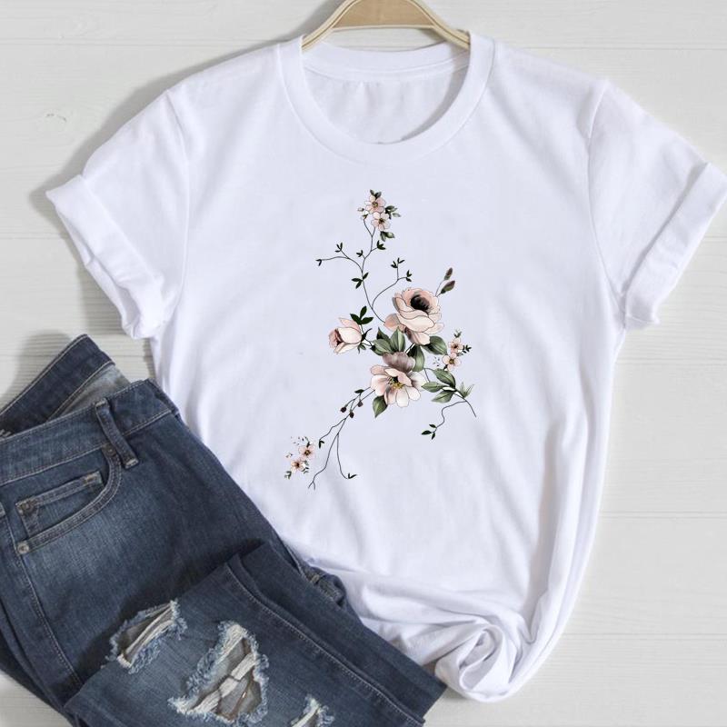 (European Size)90s Fashion Tee Clothing Casual Top Flower Lovely Trend T Shirt Short Sleeve Women Print Lady Female Graphic T-shirt