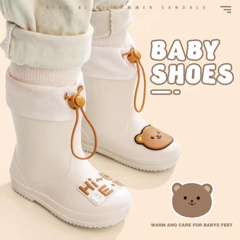 Feng Qing Fan Kids' Waterproof Rain Boots with Non-slip Sole and Elastic Cuff - Cartoon Design for Toddlers