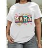 Women's Happy Mother's Day Print Tee Floral Heart Black White Loose Fit Short Sleeve Spring Summer Casual Mama Graphic Top