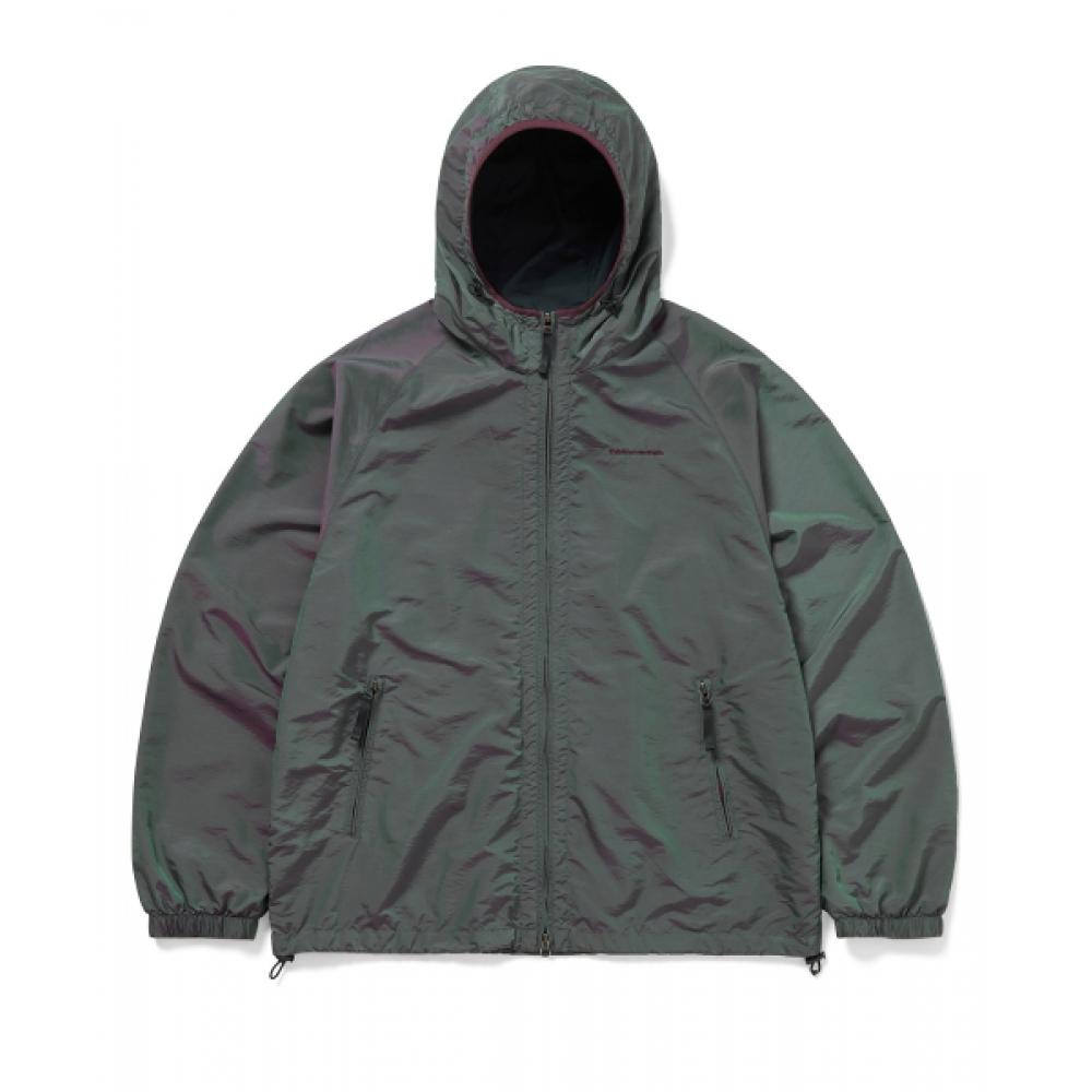 The THISISNEVERTHAT SP-Logo Windbreaker Olive Drab is a lightweight outerwear focusing on wind protection, made from a durable nylon-polyester blend ripstop fabric. The hood is adjustable with a drawcord, and the hem also features a drawcord for versatile styling. It is enhanced with YKK nylon zippers for increased functionality and durability.