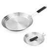 Round Hollow Wooden Handle BBQ Grill Pan for Outdoor Vegetables and Meat