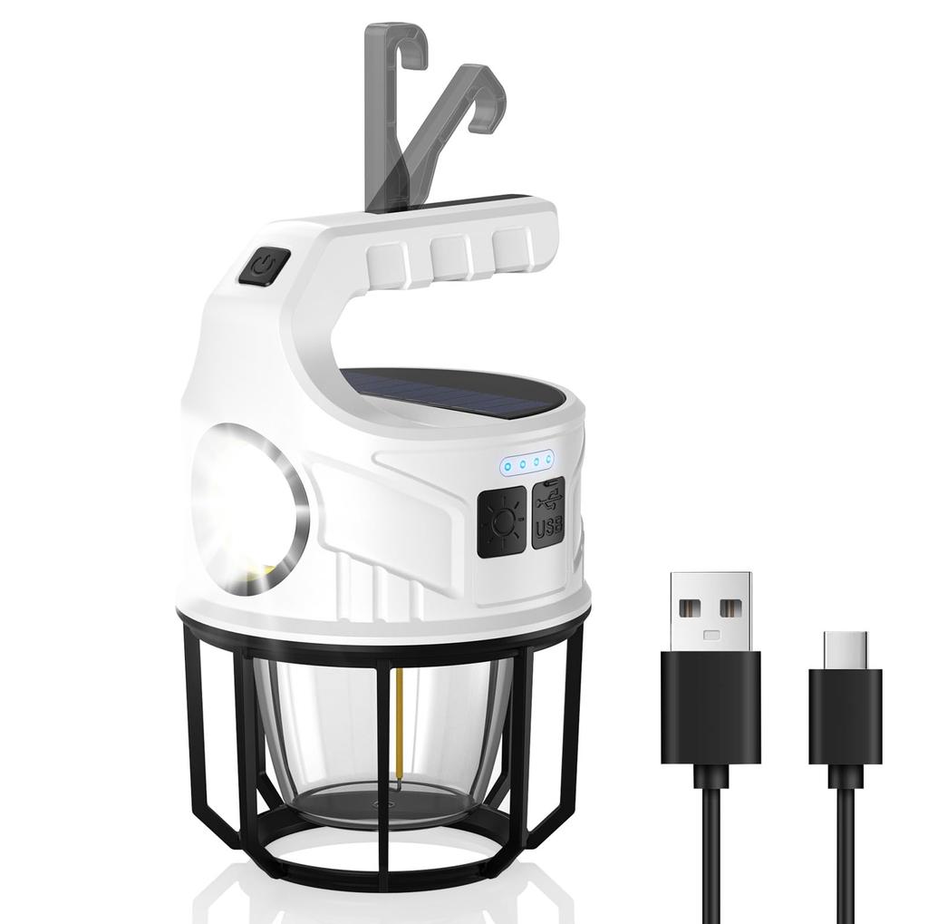 Multi-purpose LED lantern, camping lantern with 4000mAh high-capacity battery, USB rechargeable, solar charging, power indicator, IP65 waterproof, out