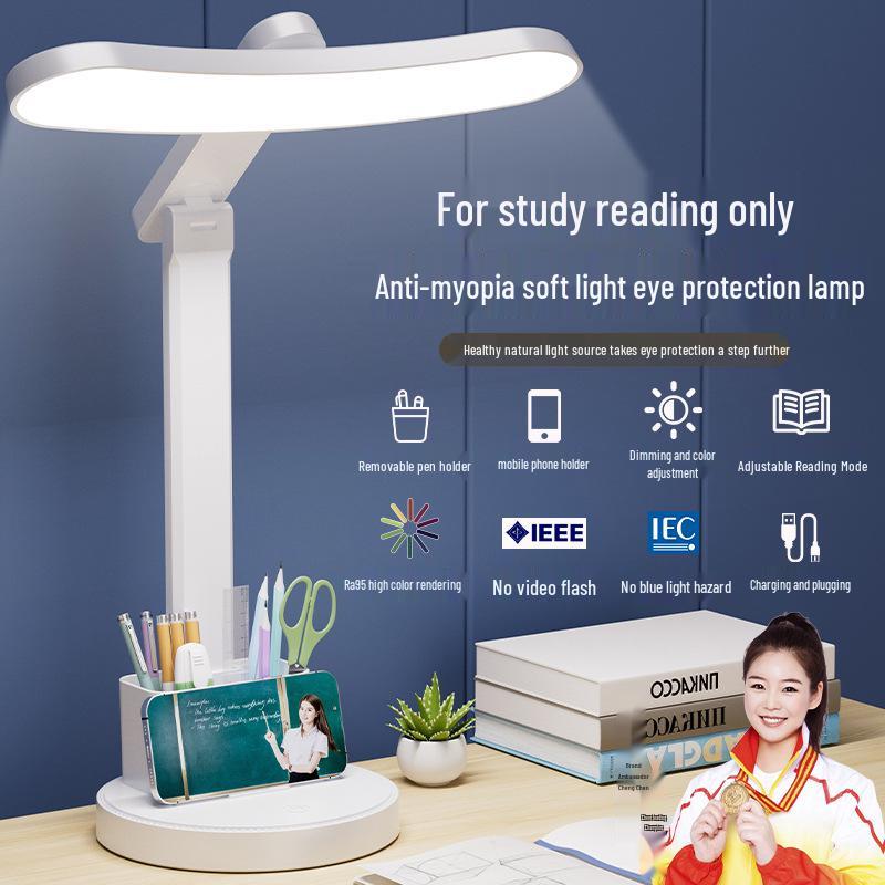 LED Folding Desk Lamp: Eye-Protective, Ambient, Rechargeable Night Light for Study, Dorm, and Bedside Reading.