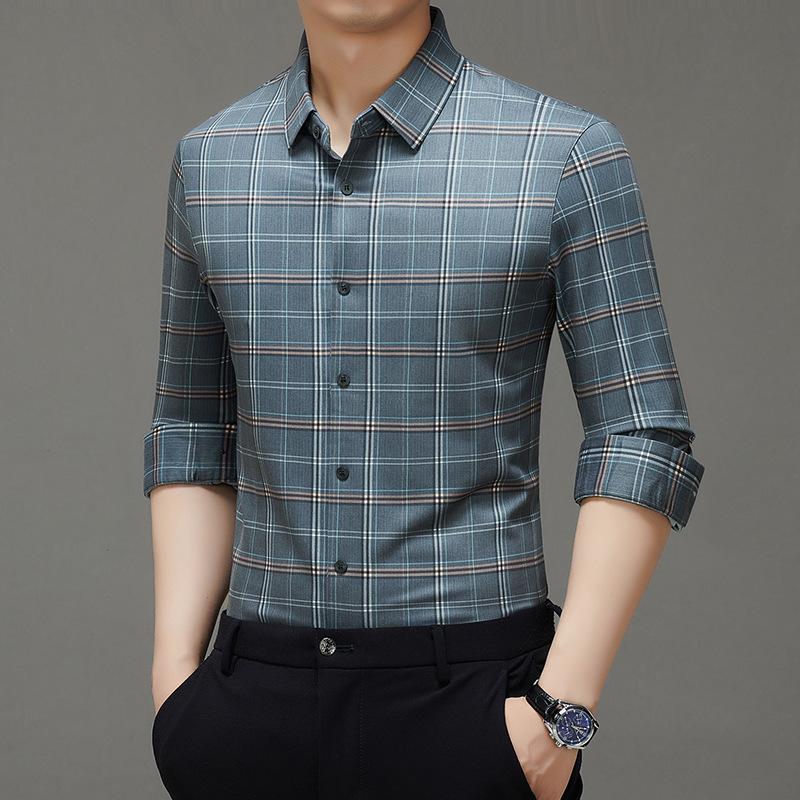 "Discover a stylish and comfortable addition to your wardrobe with this slim fit plus size men's long-sleeve casual shirt. Crafted from a soft cotton blend, it offers a breathable and cozy feel for all-day wear. The shirt features a tailored neckline for an elegant touch, and its long sleeves provide style and versatility. The unique color block pattern adds a modern flair, making it perfect for casual outings or gatherings. Upgrade your fashion game with this impeccable piece that seamlessly combines comfort and style.