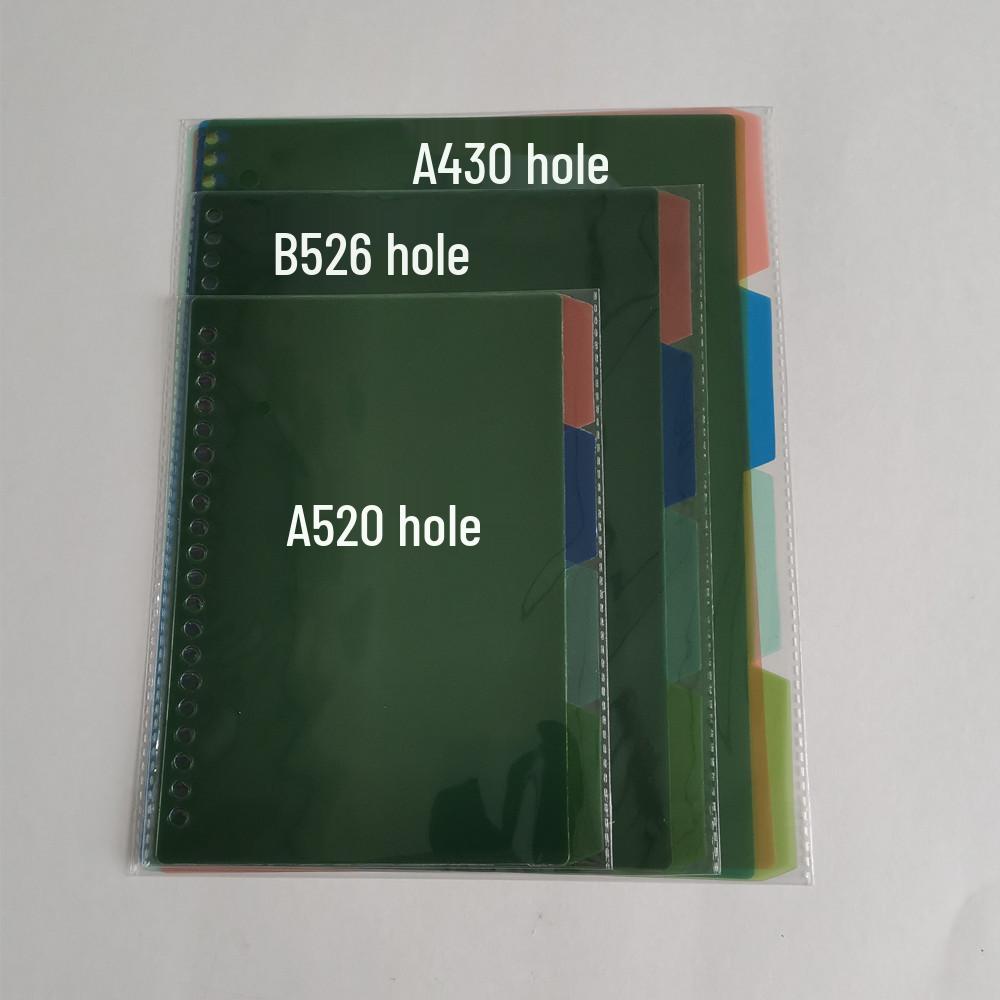 Barevné dělicí listy do pořadače a samolepicí štítky - Plastové listy A4/A5/B5 pro stránky zápisníku