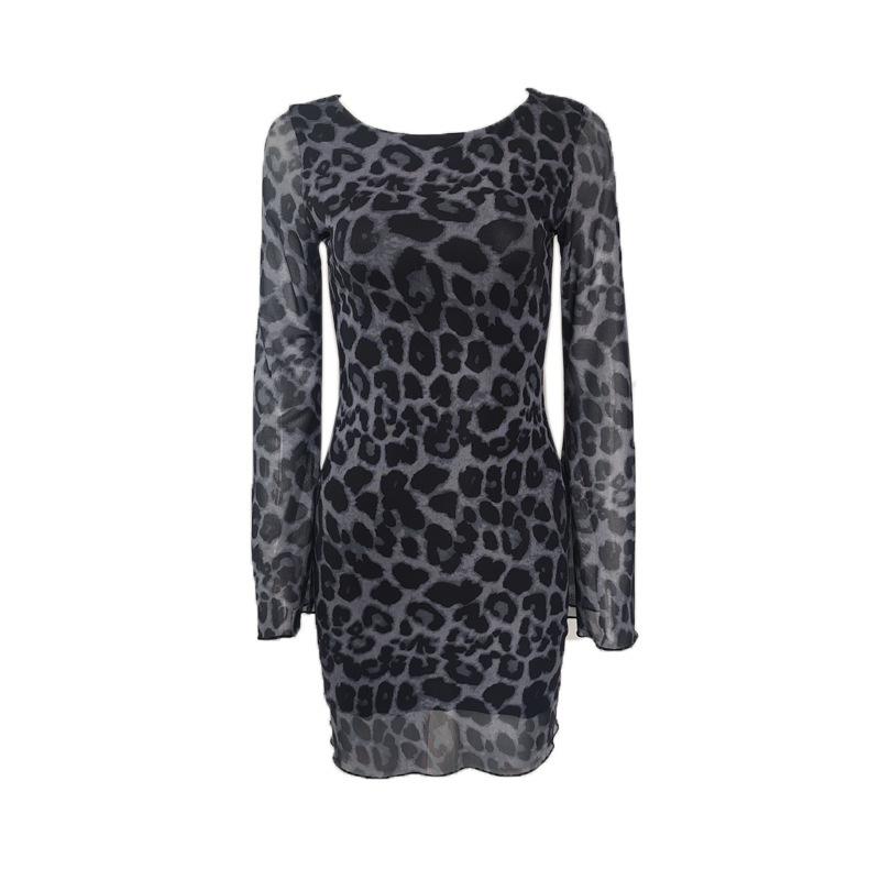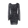 Wind new women's clothing round neck hip wrap short skirt leopard print wooden ear edge horn long sleeve wholesale sexy