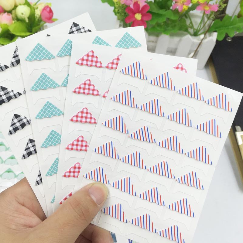 24 Retro Plaid & Stripe Photo Corner Stickers for DIY Albums & Cards - 4 Colors
