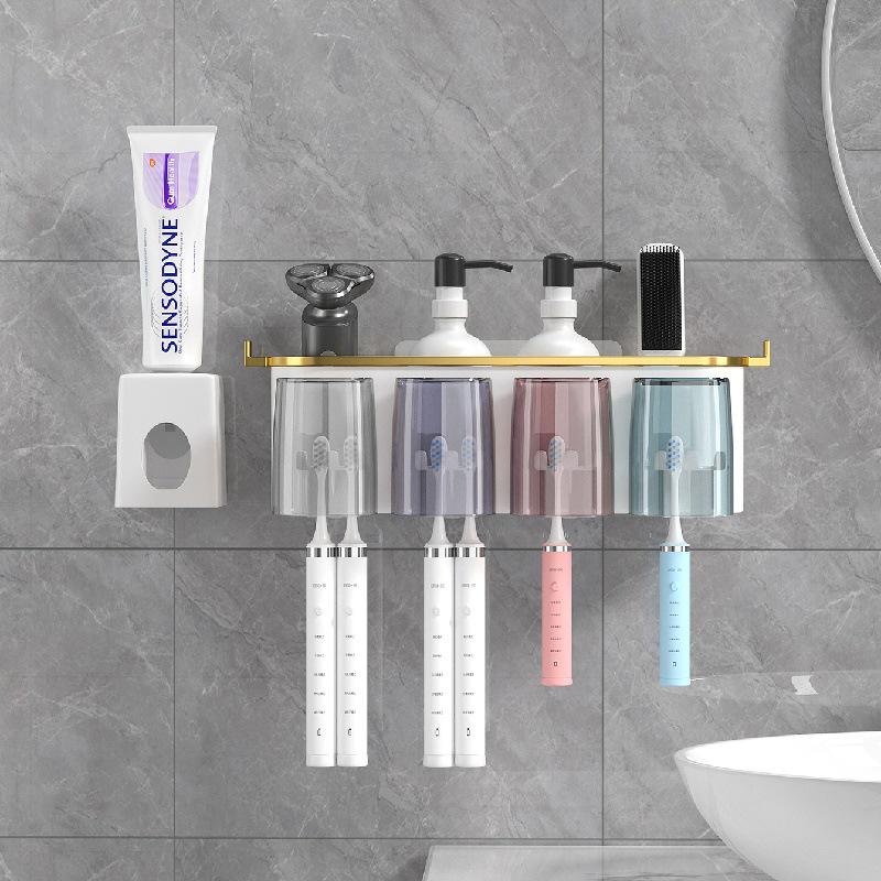 Gold Plated Wall-Mounted Toothbrush & Toothpaste Holder with Mouthwash Cup