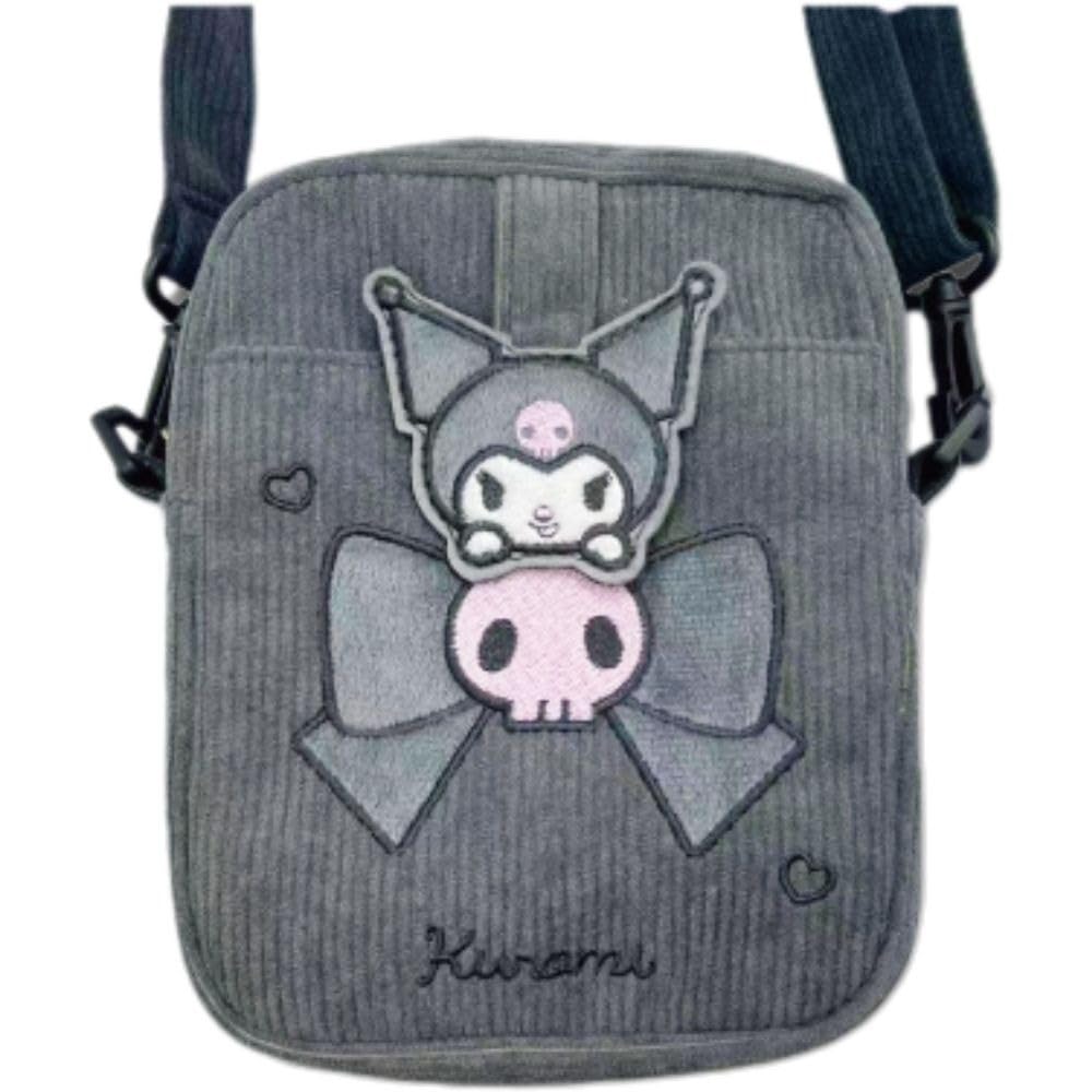 Hatayama Shoji Sanrio Corduroy Character Shoulder Pouch, Cute Mini Shoulder Bag, Kuromi [Body] Approx. H18 x W14 x D5cm [Belt] Max. 120cm [Patch]