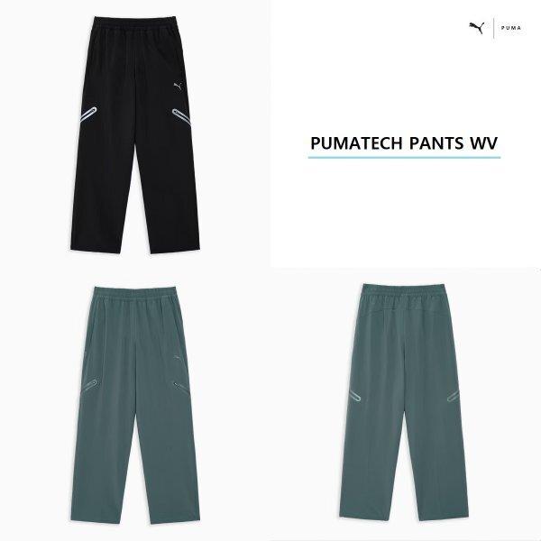 The Puma PUMATECH Pants WV 636283 - 01 are designed for soccer, presented in black color, featuring a simple design. The material is designed to ensure breathability and freedom of movement.