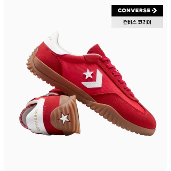 The Converse Run Star Trainer OX Red A17238C is a sports sneaker from the Converse brand, featuring a low-top style. Inspired by lightweight running shoes, this design modernly reinterprets the classic Converse style. The upper is made of canvas and synthetic leather materials to provide durability and style. The outsole is made of rubber for grip and cushioning, while the midsole uses EVA material for a lightweight feel. The contrasting red background with a white outsole and brand logo makes this product suitable for a casual look.