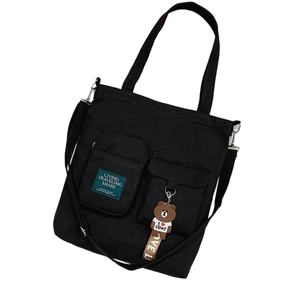 Cedar Eight Canvas Shoulder Bag, Women's Casual ShoulderCrossbody Tote Bag (Black)