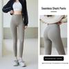 Stay warm and comfortable this autumn and winter with these Women's High-Waisted Seamless Fleece Pants. Crafted from high-quality nylon, these pants feature a solid pattern and provide light shaping to enhance your natural silhouette. The antibacterial base layer ensures freshness throughout the day, making them an ideal choice for cool weather activities or lounging at home. Designed for a perfect fit, these pants are both stylish and functional, providing the ultimate combination of warmth and comfort.