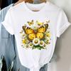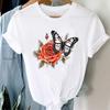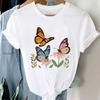 (Asian Size) Printed Clothing Top Fashion Short Sleeve T-shirts Women vintage butterfly flower Graphic Tee Lady Female Casual T Shirt Tees