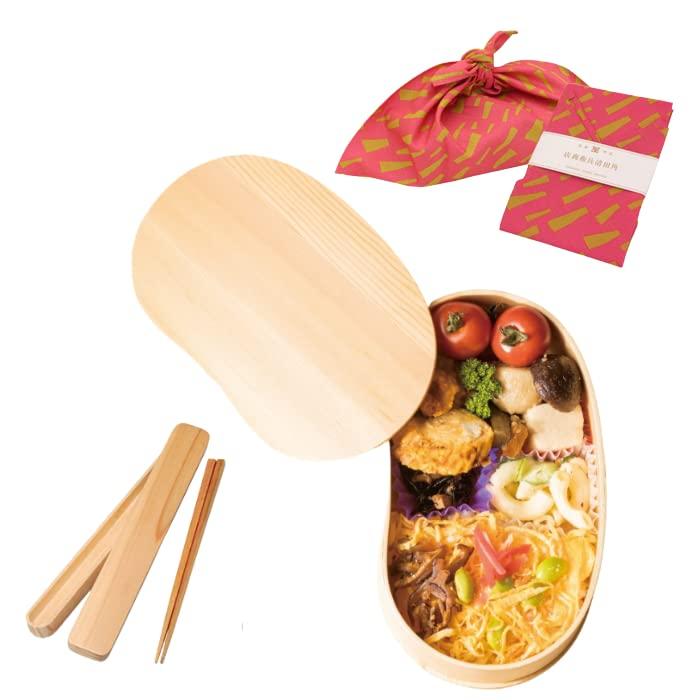 Yamaga Lacquerware Original Set: 1. Bentwood Bento Box 2. Chopsticks and Chopstick Case Set 3. Azuma Bag (Bento Wrap) 3-Piece Beginner's Set. Small, b