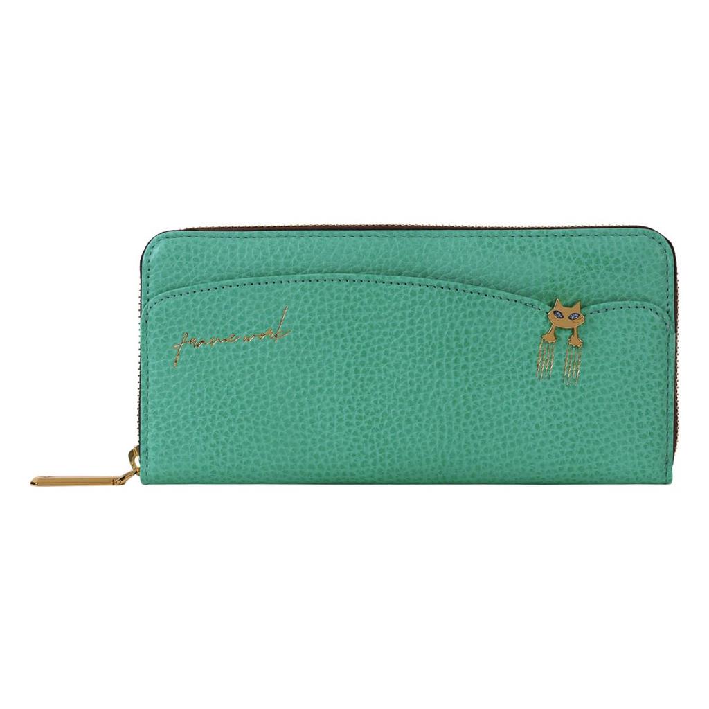 This long wallet features an attractive design that will add a touch of glamour to your hands when paying. The Kitten series features an adorable, mischievous kitten with blue eyes. Fun details are scattered throughout, such as foil stamping that resembles scratches and paw prints, and floral fabric on the interior. The adorable kitten brooch and two-tone cotton tape are eye-catching. Opening the main compartment reveals delightful details like the floral interior and kitten paw prints. The accordion-style round zipper opens wide, allowing you to store plenty of cards and coins. ◆Brand name: FRAME WORK ◆Series: Kiton ◆Item number: 0045003 ◆External dimensions: Height 9cm x Width 19.5cm x Depth 2cm ◆Weight: 215g ◆Bill compartments: 2 places *Can hold 10,000 yen bills ◆Coin purse: 1 place (L-shaped zipper) ◆Card slots: 18 places ◆Inner pockets: Open x 4 ◆Outer pockets: Open x 2 ◆Main opening: Round zipper ◆External material: Cowhide ◇Texture: Soft □■□□□ Hard (※The notation is a guideline) ◆Lining: Yes ◆Other: Can hold 10,000 yen bills without folding them