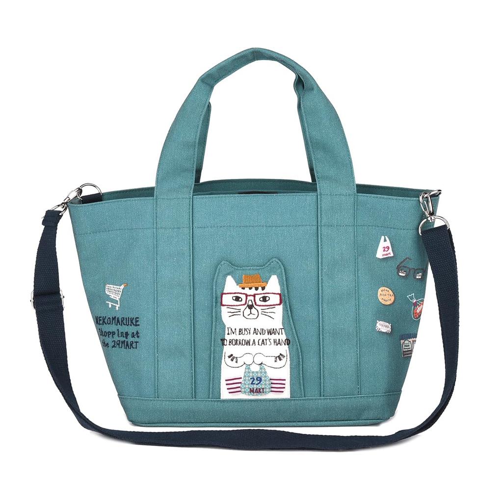 Kusguru Japan Nekomaruke 2-Way Separate Tote Bag for Women, 258510, Blue-Green