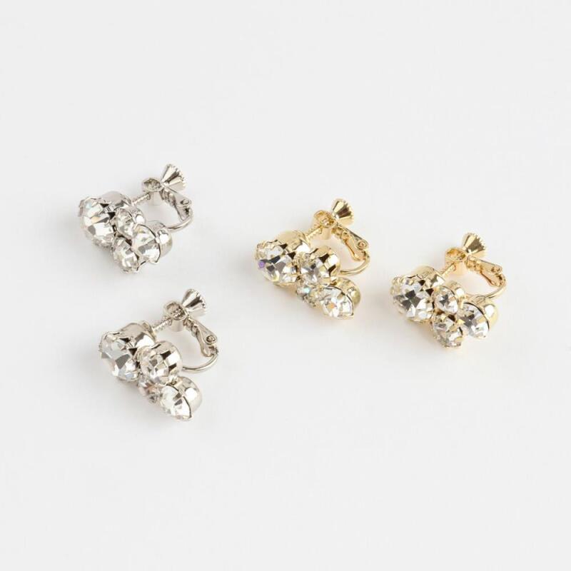 Cubic Earrings Bling Daily Silver One-Touch Earrings