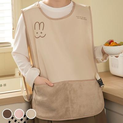 Kuchyňská zástěra Roztomilý kreslený potisk Volný kulatý výstřih Kontrastní barvy Patchwork Odolná proti oleji Vodotěsná Králičí potisk Večeřová zástěra pro domácnost
