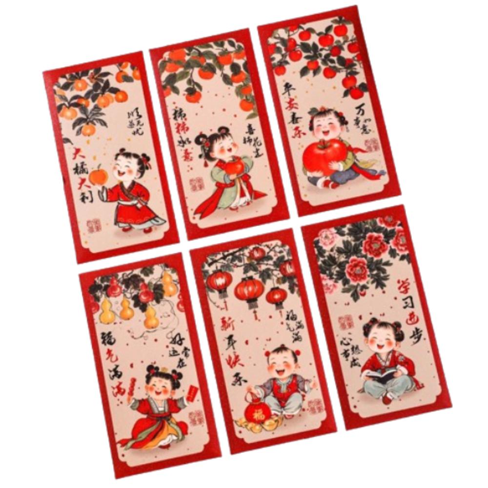 6pcs Traditional New Year Red Envelopes Cartoon Gifts Packing Bags Wedding Birthday