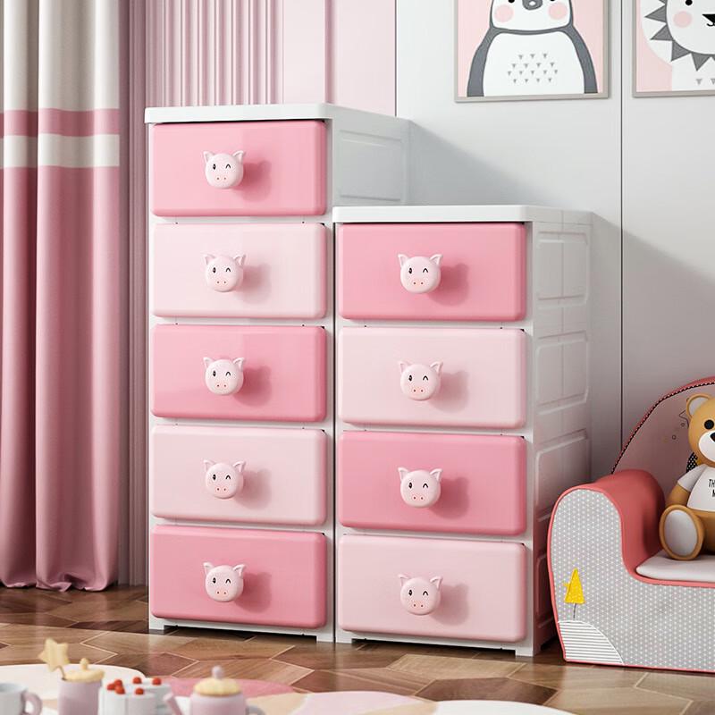 Miling Cartoon Pink Piggy 7-Drawer Plastic Storage Cabinet