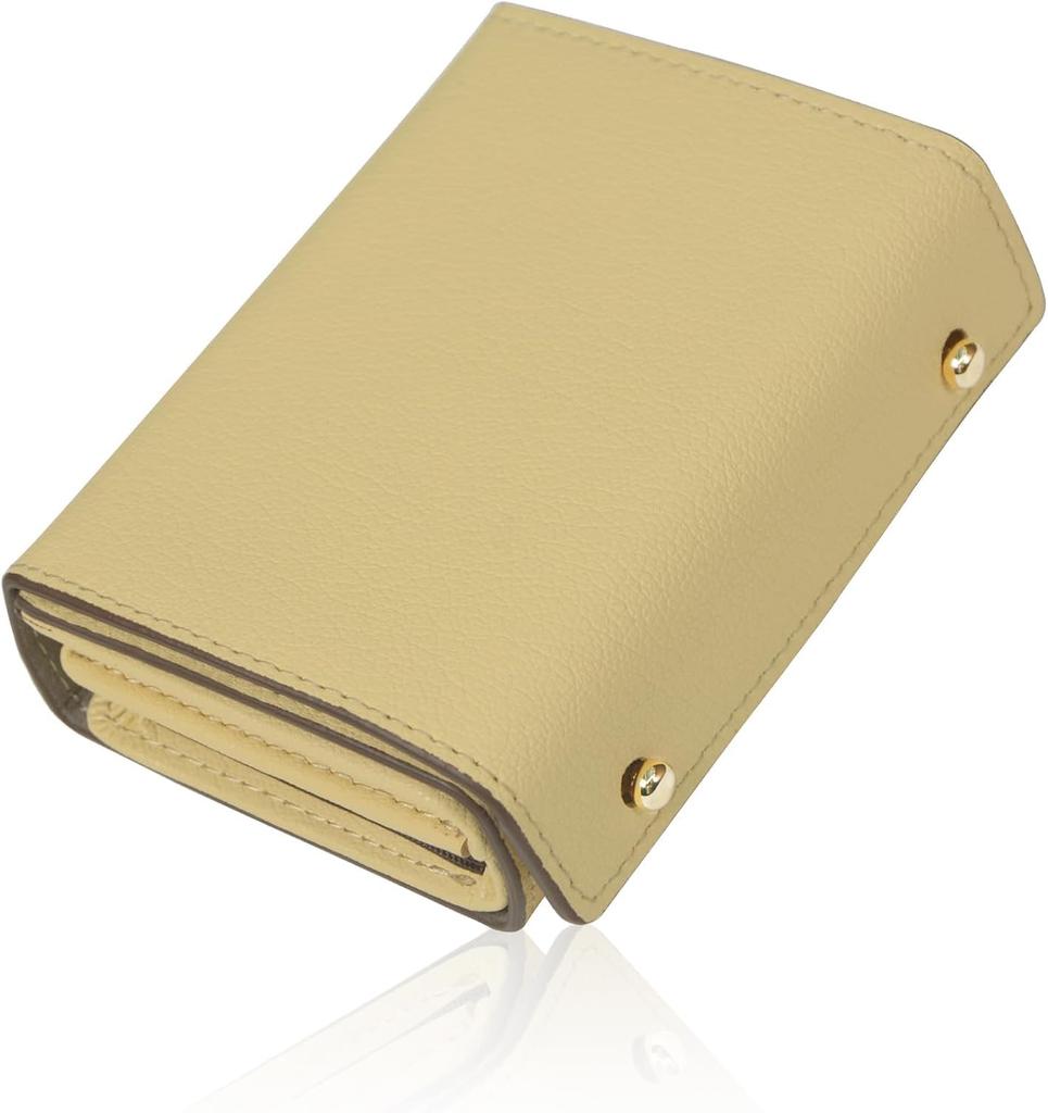 KIZETTO Women's Genuine Leather Small Wallet, Box-Shaped, Compact, Easy to Use, with Multiple Card Slots, Coin Purse, and Bifold Design (Yellow)