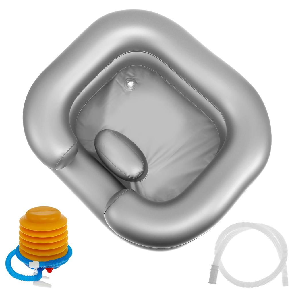 Inflatable Hair Washing Basin with Head Neck Support Drain Hose Foldable Portable Inflatable Shampoo Basin for Disabled Elderly