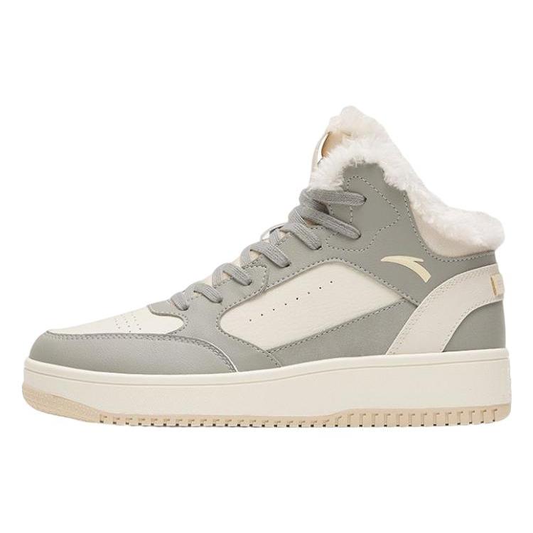 Anta Textile, Leather Fleece lined Thermal Slip Resistant And Abrasion Resistant High top Skateboard Shoes Women's Gray 922248913-3