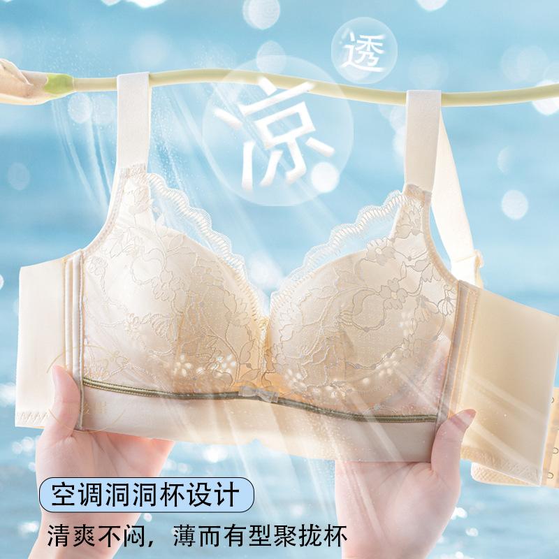 Traceless underwear, thin women's big breasts in summer, small anti-sagging bra, ultra-thin underwear gathers and collects sub-breasts, bra