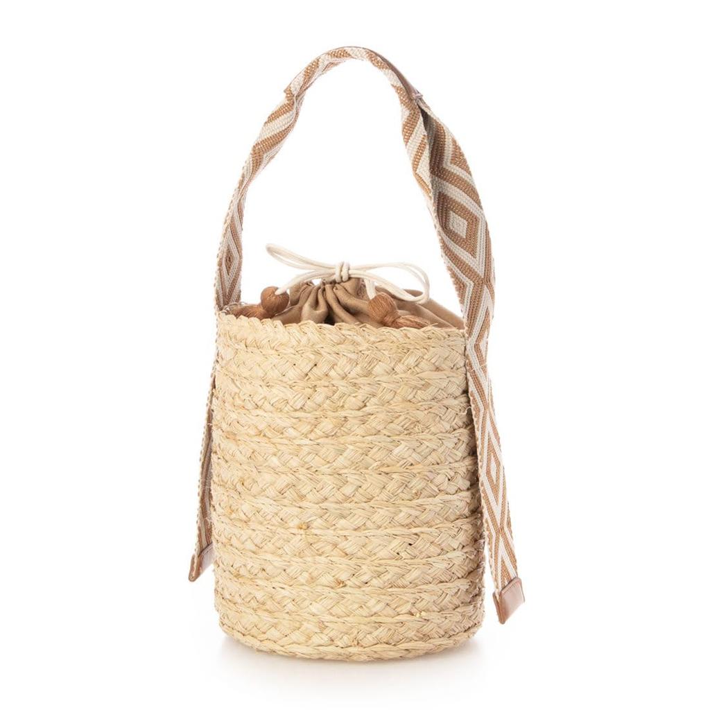 [Kashkash] Jacquard Tape Handle Raffia Bucket Tote