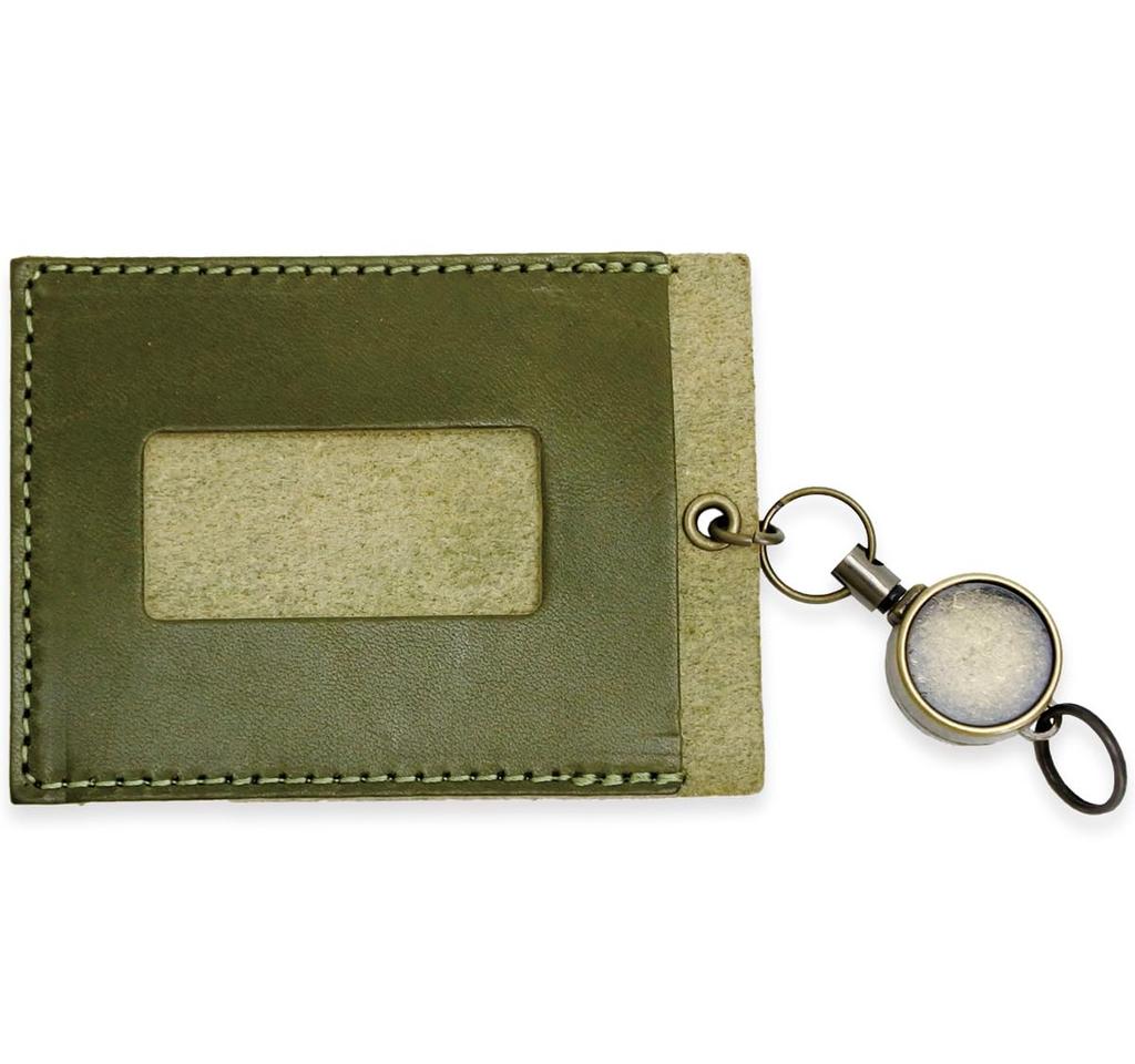 Genuine Tochigi Leather Pass Case with Reel for Men and Women, Made in Japan (Khaki)
