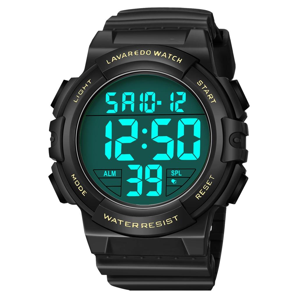 Multi-function digital watch for men: This men's watch features time, day of the week, calendar display, stopwatch, backlight, alarm clock, and waterproof function. It also features a long-life battery and shock-resistant design for extra durability.