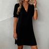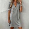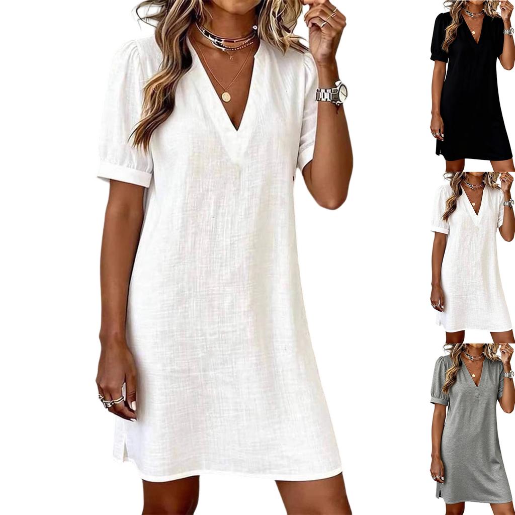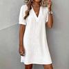 Women's Casual Loose Multi-colored Short-sleeved V-neck Cotton Linen Dress