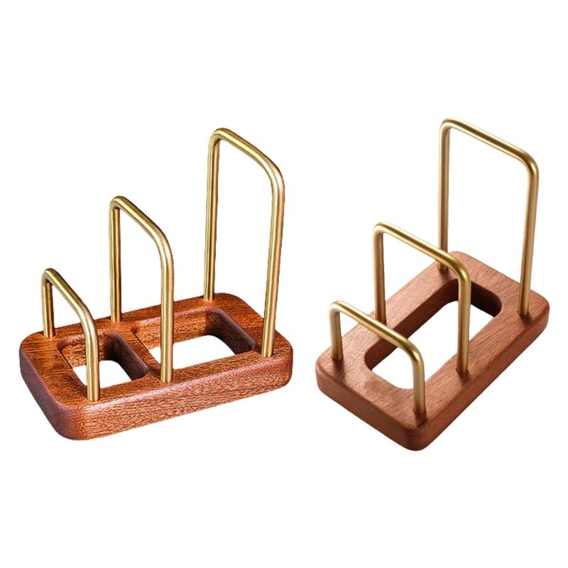 Prostorově úsporný držák na krájecí prkénka s protiskluzovou dřevěnou základnou, úložný stojan na desku na krájení na pracovní desku