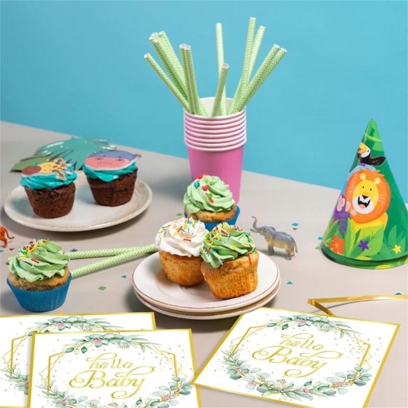 Elevating your Baby Showers Party Decorations with our disposable paper plates or napkins, great for effortlessly hosting baby showers parties and birthday celebration.