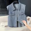 Cotton Denim Sleeveless Shirt Women's Summer New Loose Fit Fashionable Slimming Top with Design
