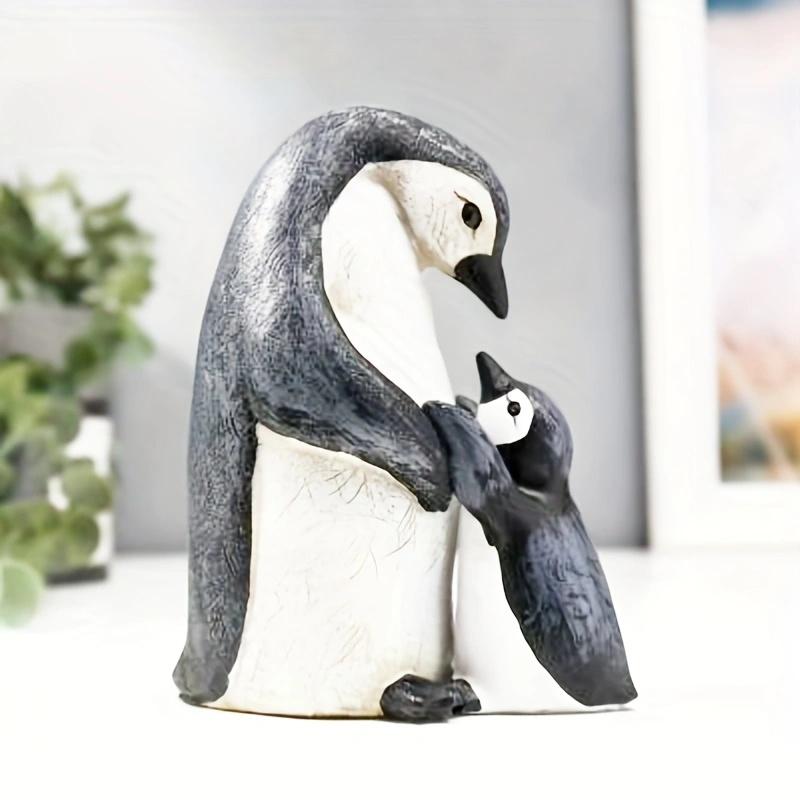 A Set of Two Resin Statues Featuring a Mother And Penguin Showcasing a Creative Family Theme These Can Serve As Decorative Pieces for Home