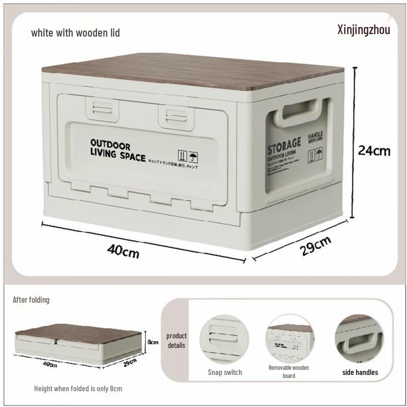 27L venkovní skládací úložný box s dřevěným víkem