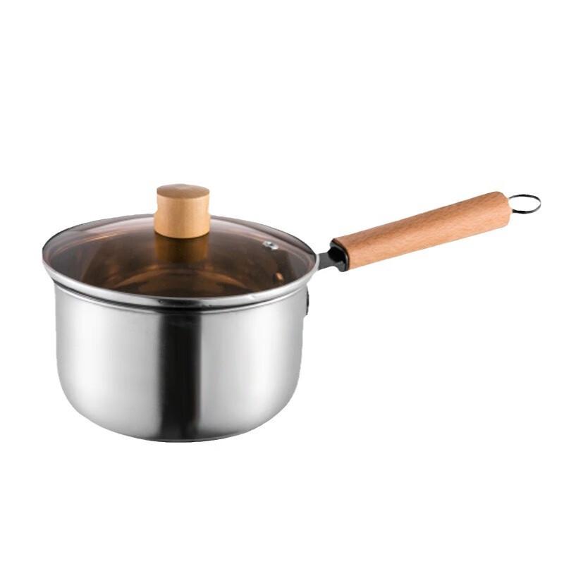 Utoo Stainless Steel Milk/Saucepan with Wooden Handle and Glass Lid